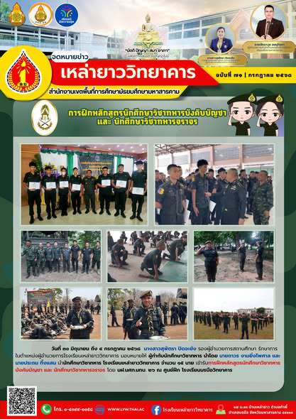วันที่ ๓๐ มิถุนายน ถึง ๔ กรกฎาคม ๒๕๖๘  นางสาวสุพัตรา ปิดจะยัง รองผู้อำนวยการสถานศึกษา รักษาการในตำแหน่งผู้อำนวยการโรงเรียนเหล่ายาววิทยาคาร มอบหมายให้ ผู้กำกับนักศึกษาวิชาทหาร นำโดย นายถาวร งามยิ่งไพศาล และ นายประถม ทิ้งแสน นำนักศึกษาวิชาทหาร โรงเรียนเหล่ายาววิทยาคาร จำนวน ๑๕ นาย เข้ารับการฝึกหลักสูตรนักศึกษาวิชาทหารบังคับบัญชา และ นักศึกษาวิชาทหารจราจร โดย นฝ.นศท.มทบ. ๒๖ ณ ศูนย์ฝึก โรงเรียนบรบือวิทยาคาร