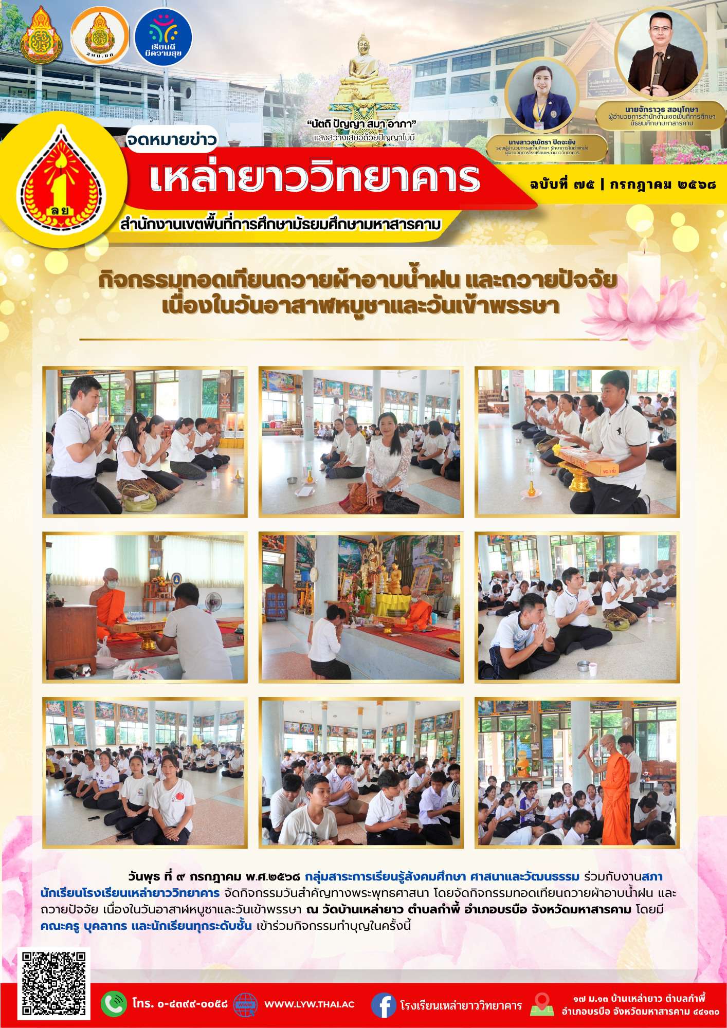 โรงเรียนเหล่ายาววิทยาคาร จัดกิจกรรมวันสำคัญทางพระพุทธศาสนา (09/07/2568)