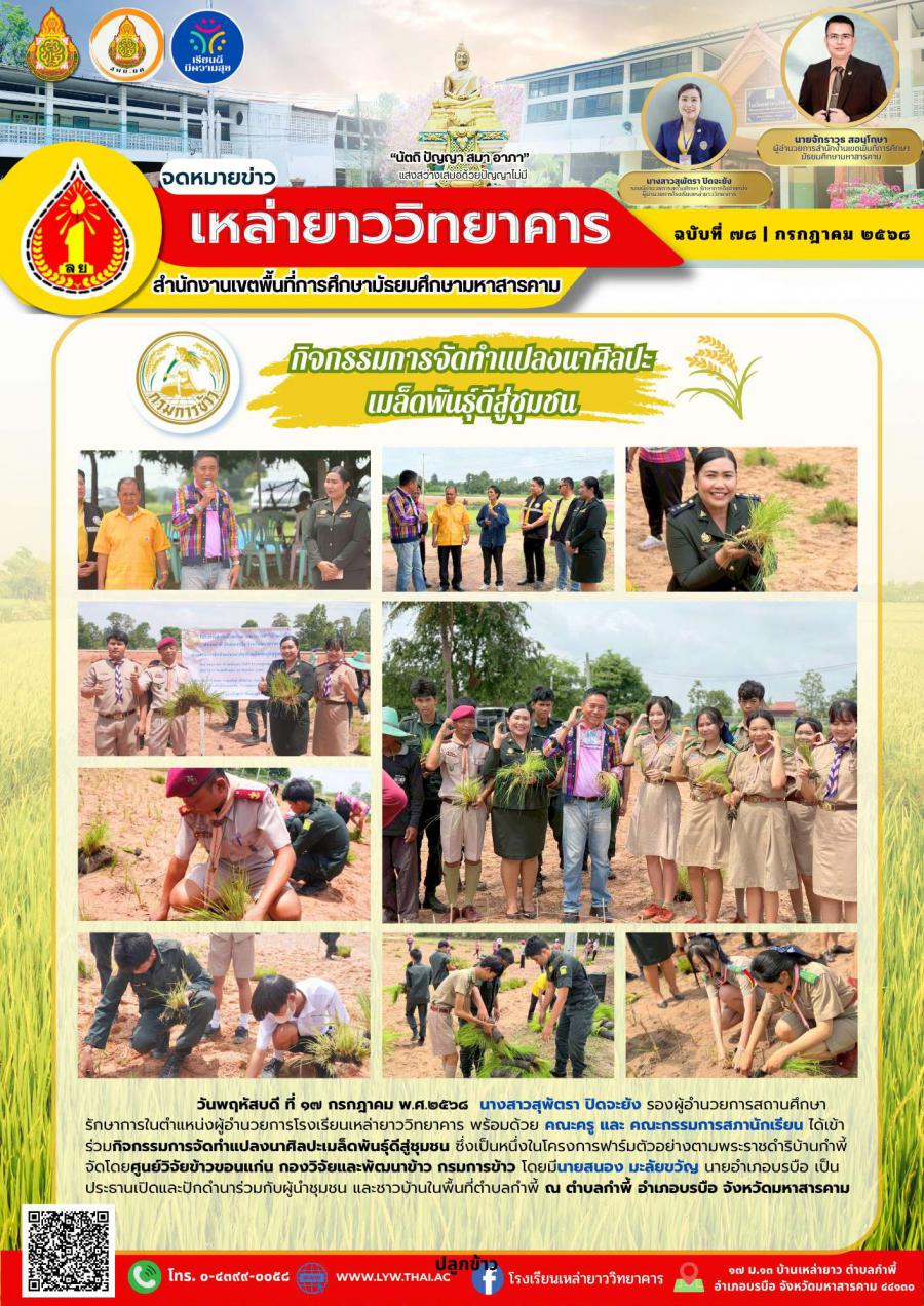 รองผู้อำนวยการสถานศึกษา รักษาการในตำแหน่งผู้อำนวยการโรงเรียนเหล่ายาววิทยาคาร พร้อมด้วย คณะครู และ คณะกรรมการสภานักเรียน ได้เข้าร่วมกิจกรรมการจัดทำแปลงนาศิลปะเมล็ดพันธุ์ดีสู่ชุมชน