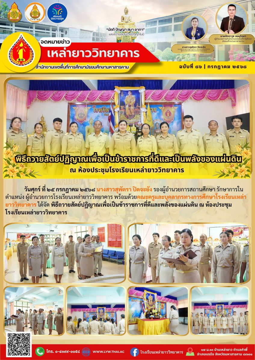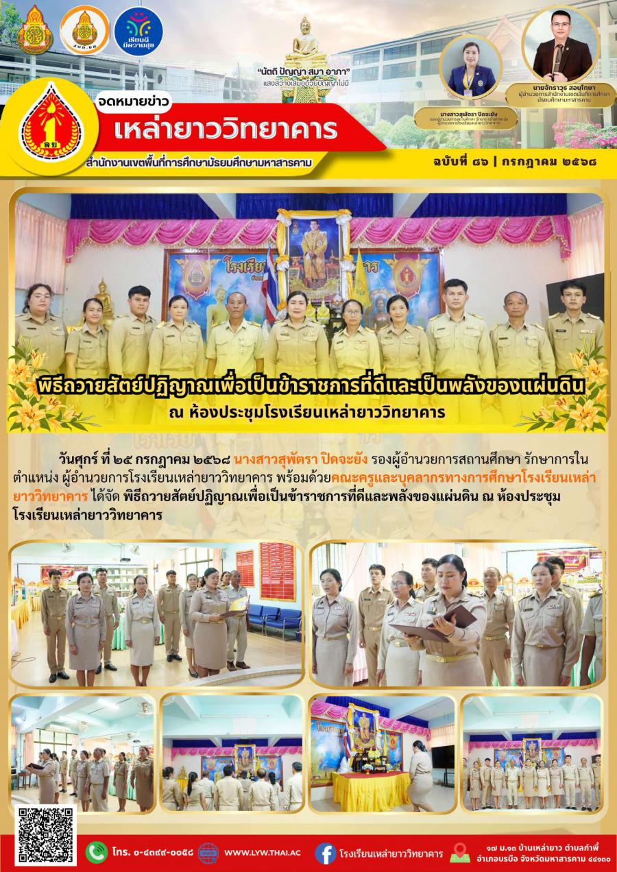พิธีถวายสัตย์ปฏิญาณเพื่อเป็นข้าราชการที่ดีและพลังของแผ่นดิน ณ ห้องประชุมโรงเรียนเหล่ายาววิทยาคาร