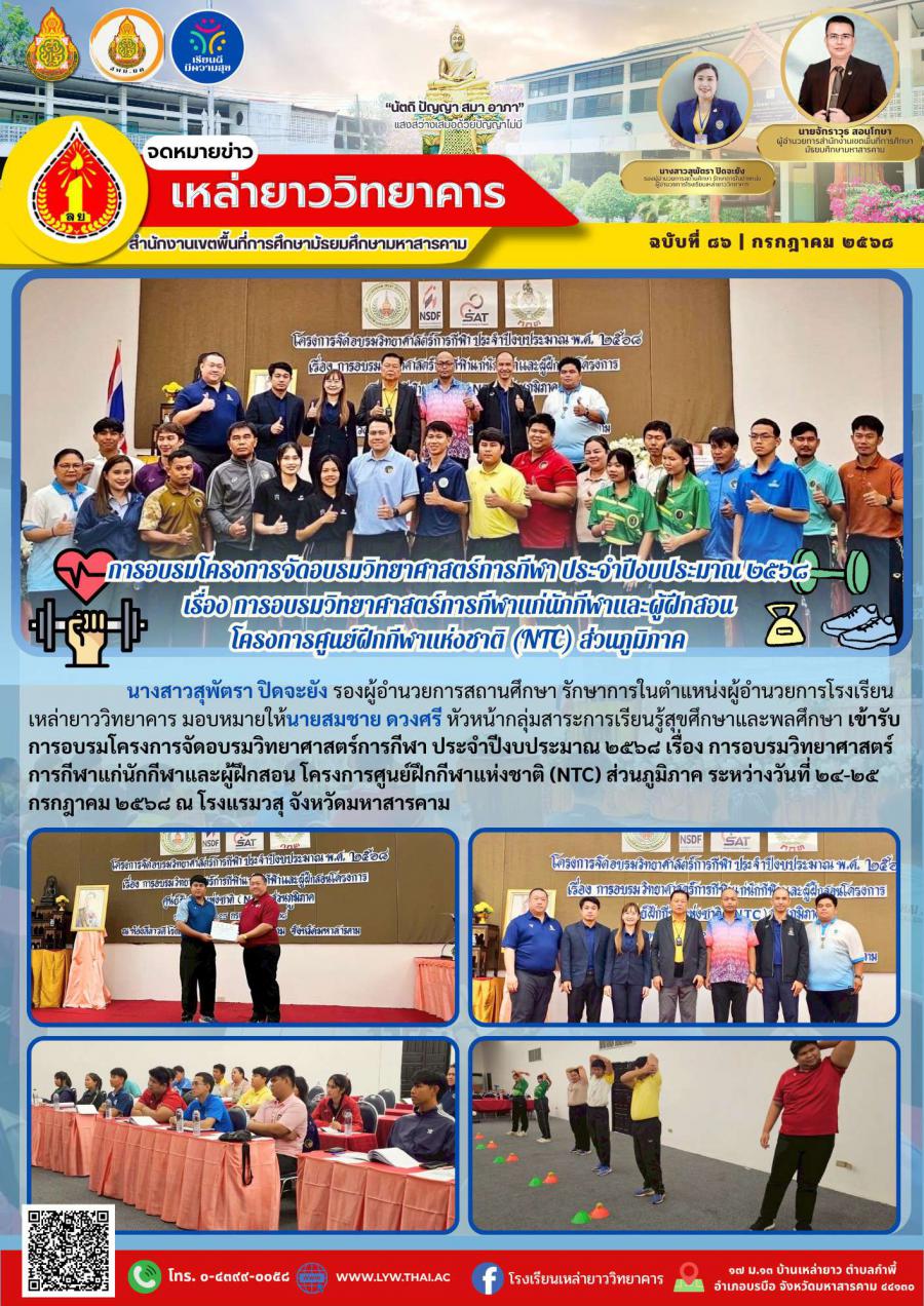 โรงเรียนเหล่ายาววิทยาคารเข้ารับการอบรมโครงการจัดอบรมวิทยาศาสตร์การกีฬา ประจำปีงบประมาณ ๒๕๖๘ เรื่อง การอบรมวิทยาศาสตร์การกีฬาแก่นักกีฬาและผู้ฝึกสอน โครงการศูนย์ฝึกกีฬาแห่งชาติ (NTC) ส่วนภูมิภาค