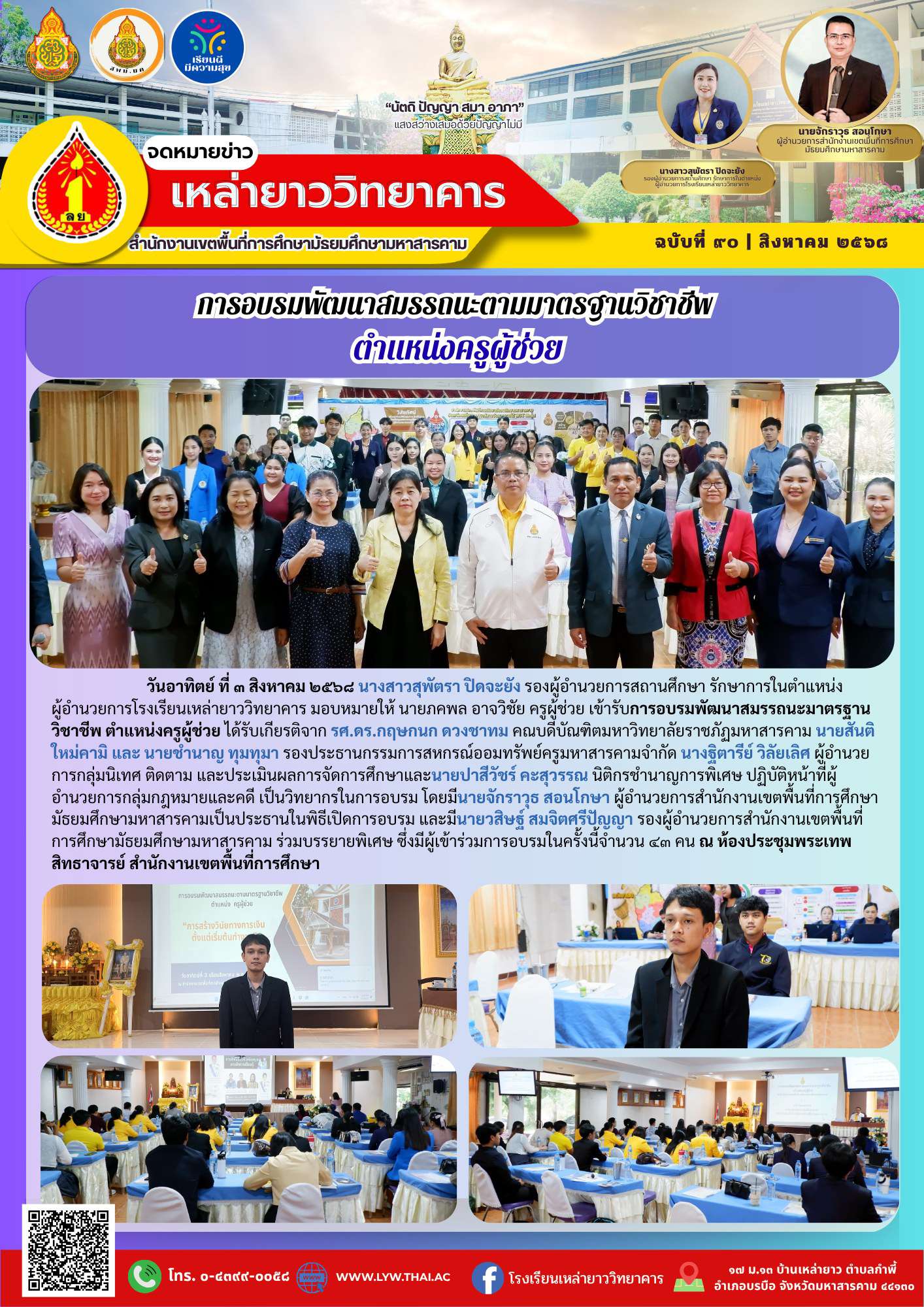 โรงเรียนเหล่ายาววิยาคาร เข้ารับการอบรมพัฒนาสมรรถนะมาตรฐานวิชาชีพ ตำแหน่งครูผู้ช่วย