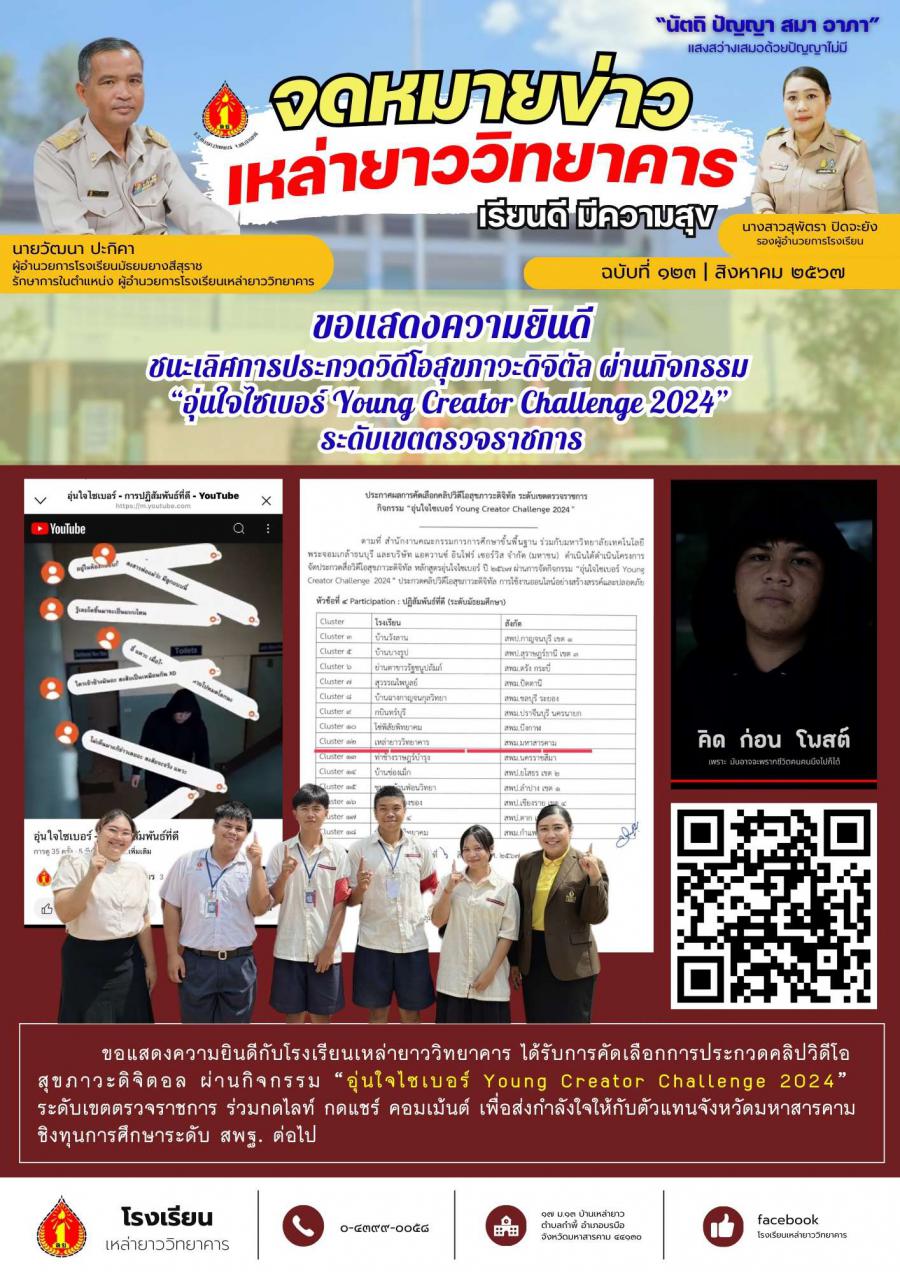 ขอแสดงความยินดี ชนะเลิศการประกวดวิดีโอสุขภาวะดิจิทัล "อุ่นใจไซเบอร์ 2024" ระดับเขตตรวจการ