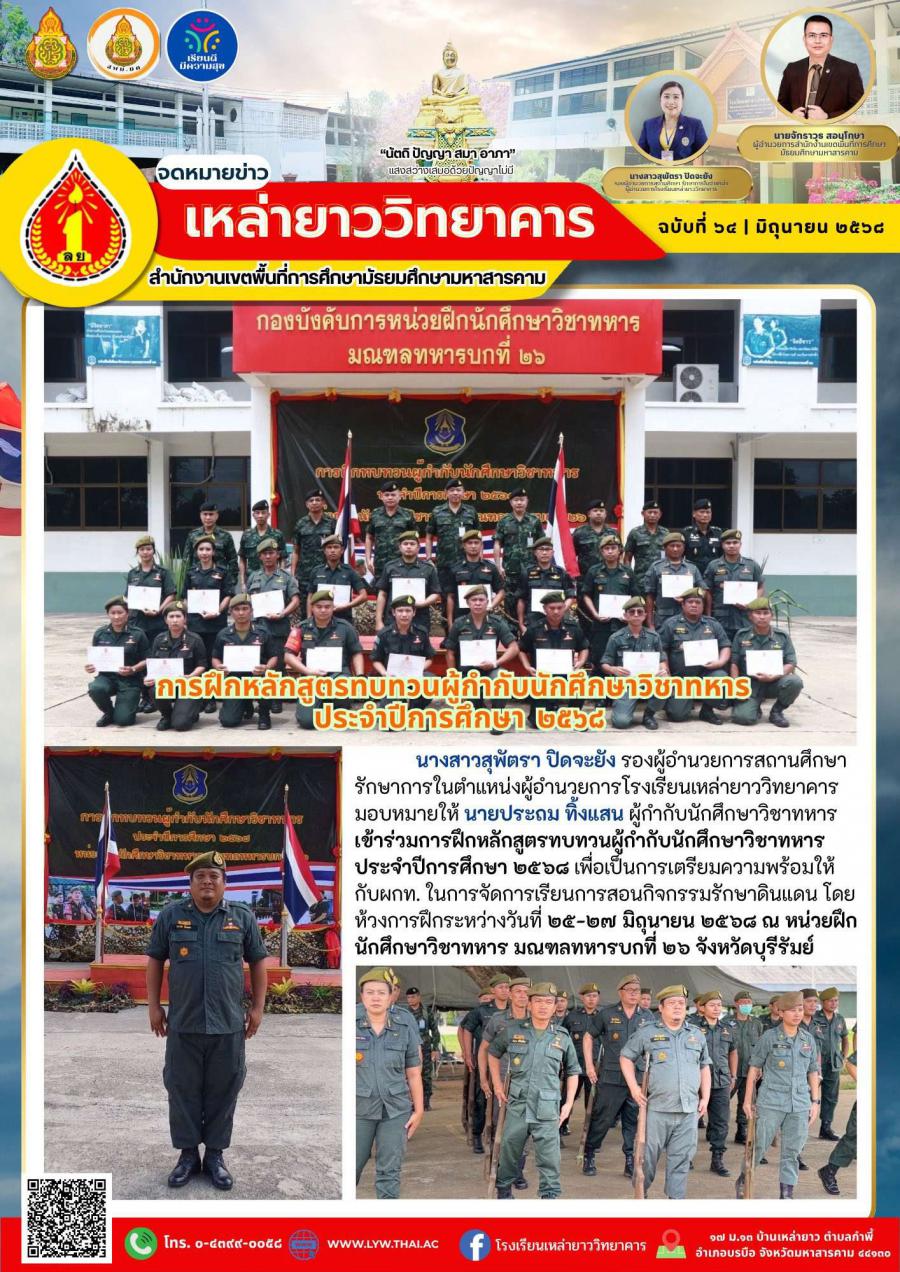 นายประถม ทิ้งแสน ครูโรงเรียนเหล่ายาววิทยาคาร ผู้กำกับนักศึกษาวิชาทหารเข้าร่วมการฝึกหลักสูตรทบทวนผู้กำกับนักศึกษาวิชาทหาร ประจำปีการศึกษา ๒๕๖๘ เพื่อเป็นการเตรียมความพร้อมให้กับ ผกท. ในการจัดการเรียนการ